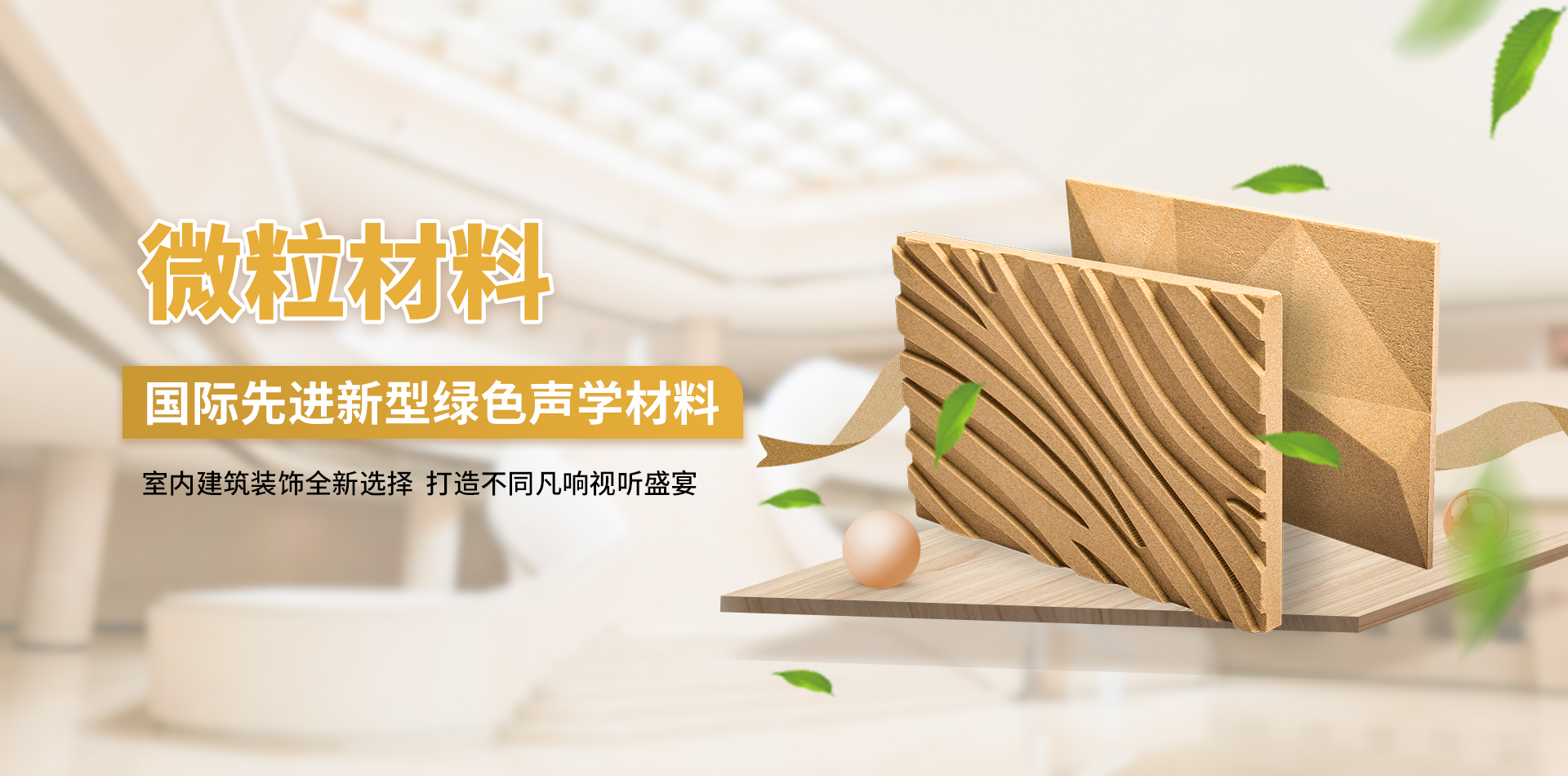 微粒材料是一種新型綠色裝飾材料,具備優(yōu)異的聲學性和物理性能。該材料是以天然砂?;蚪?jīng)環(huán)保處理的固廢顆粒為骨料,以環(huán)保膠凝劑,通過壓振工藝,生產(chǎn)的具有大量相互連通的微小空隙的多孔材料。